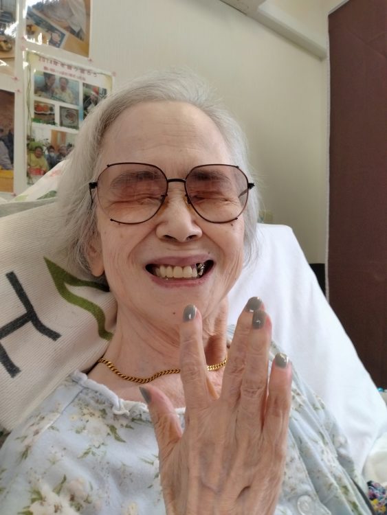 綺麗になって大変ご満悦、ぜひネイルをみてほしい、とこのポーズです🤭