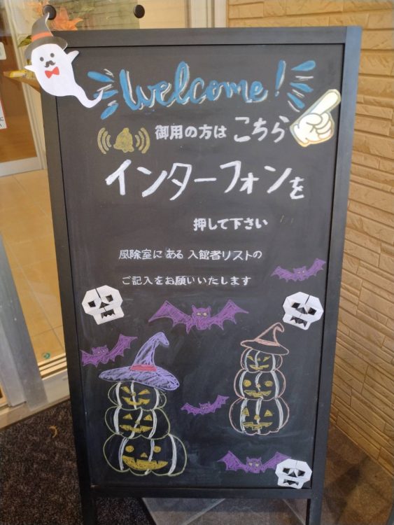 鳴海のウェルカムボードがハロウィンバージョンに更新しました!