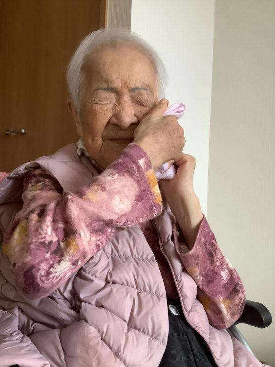 訪問時に部分清拭の為の蒸しタオルを持って行きお渡しすると、「あぁ温かいね」と