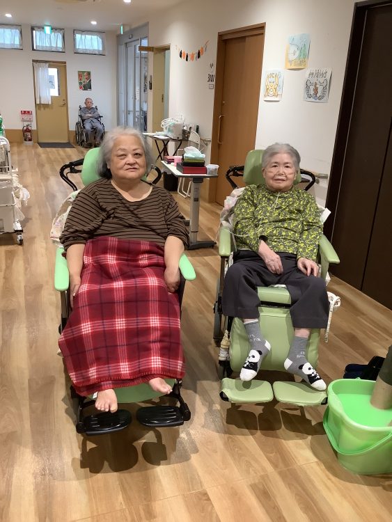 Ⅲ号棟で足湯をされた後、ほっこり気分のお二人😊