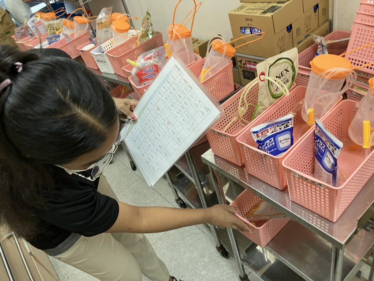 今日は昨日に引き続き、経管栄養作りをOサ責と一緒に