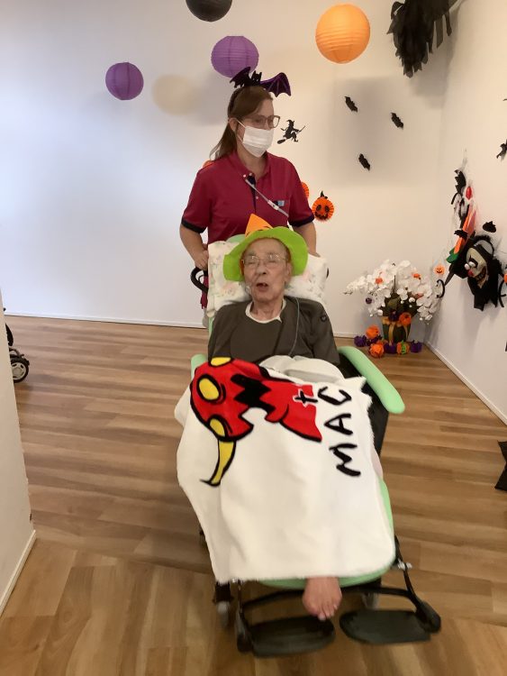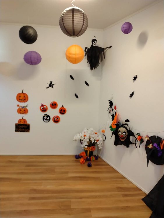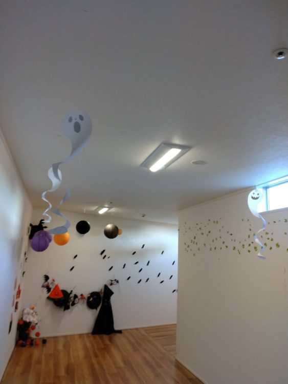 現在のⅠ号棟とⅡ号棟の渡り廊下はハロウィン仕様のになっております!