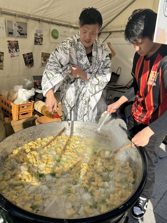 今回は、大きな鍋でちゃんこを振る舞いました。
