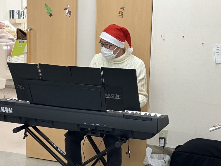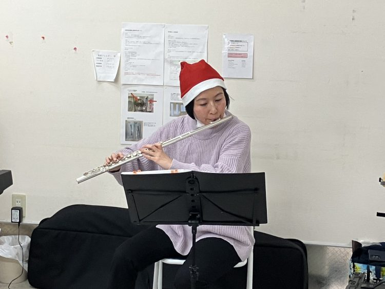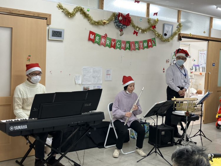 フルート、キーボード、ツリーチャイムなどの楽器演奏と、