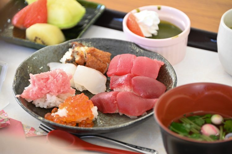 こちら特製握り寿司御膳(一口大にカットさせていただいております)