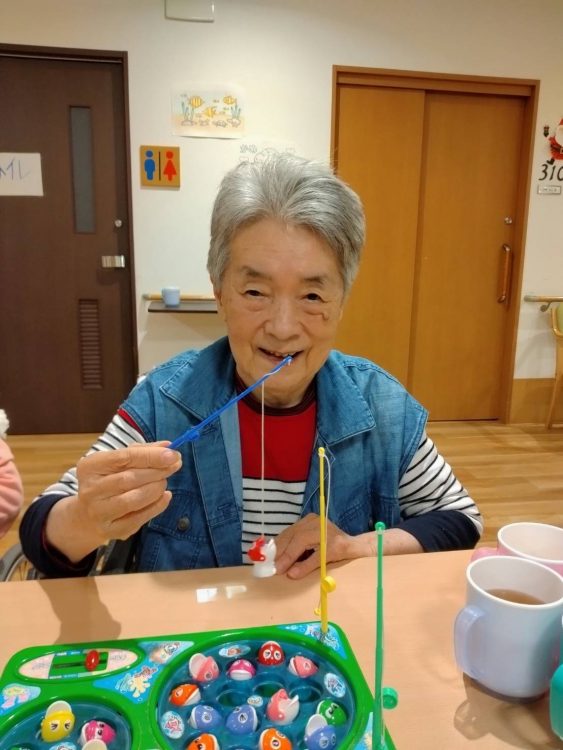 Ⅲ号棟へお邪魔するとK様が魚釣りゲームの真っ最中!