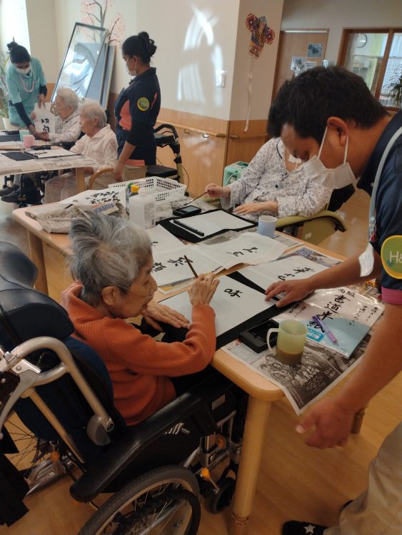 毎年恒例の書き初めレクリエーション開催しました。