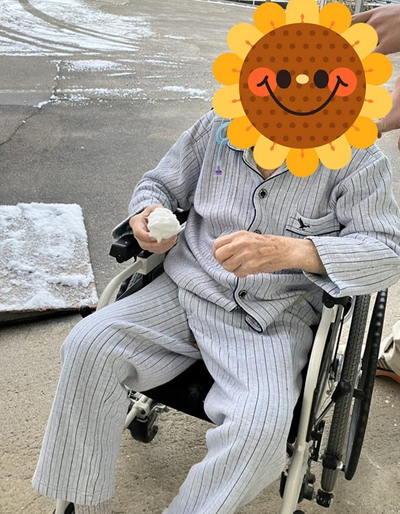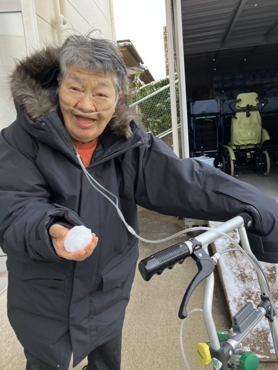 利用者様の笑顔と雪だるまに