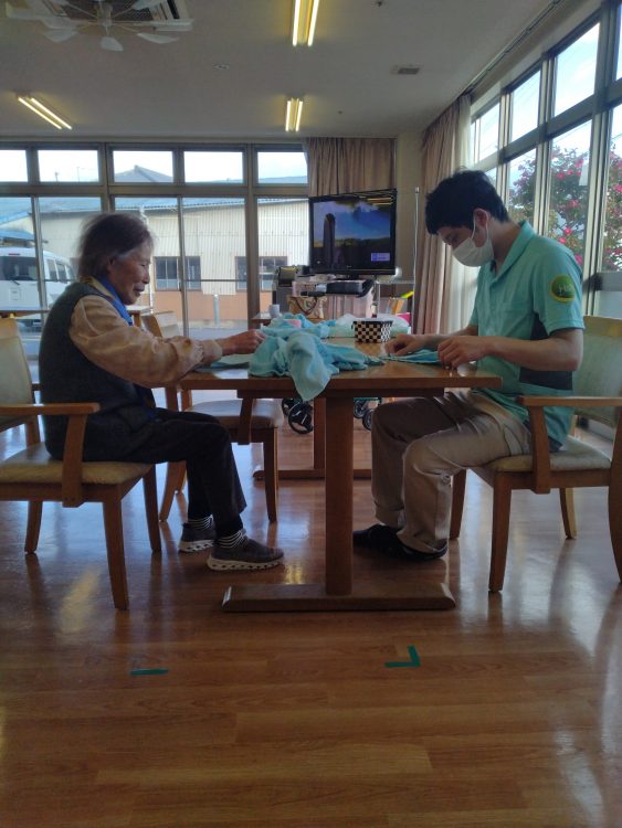 今日は午後の時間に夕飯のおしぼりを畳んでおりたしたら、一人また一人と「手伝うわ」と集まってくださいました!