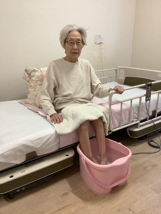 Ⅲ号棟のA様、足湯でリラックス中です😊