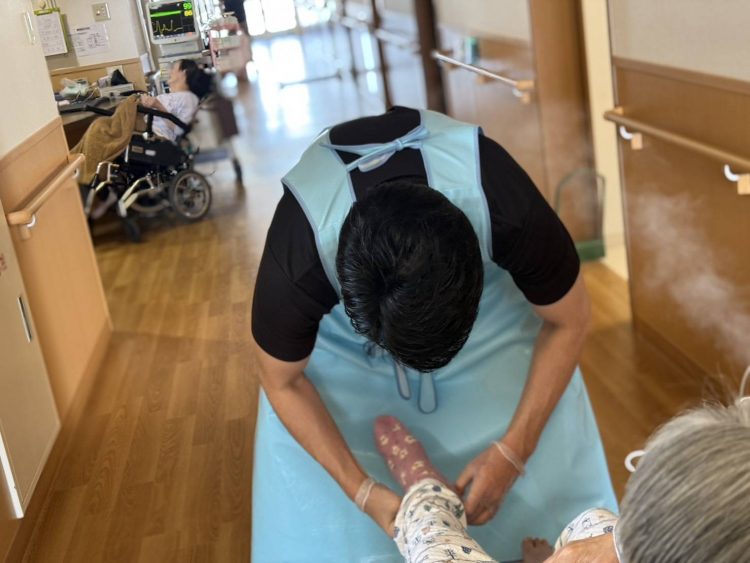 靴下もしっかり履いて頂いてこれからお部屋へ戻られます。