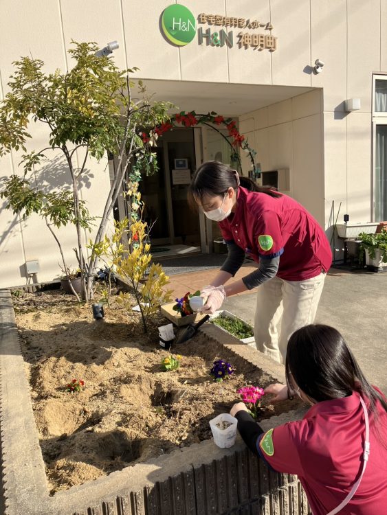 今日は少し温かいので、外に出て花壇にお花を植えました🌻