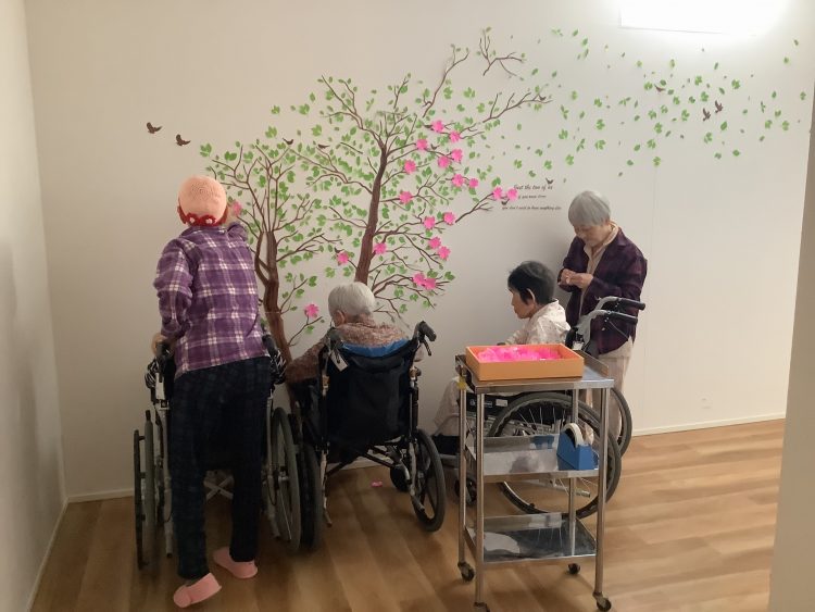 Ⅱ号棟への廊下にお花が咲きました😆