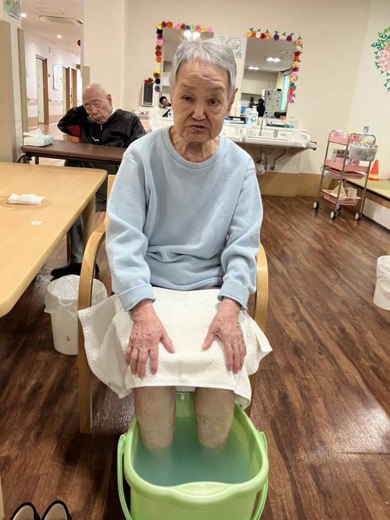 先日、Ⅲ号棟で足湯を楽しまれてるT様♨