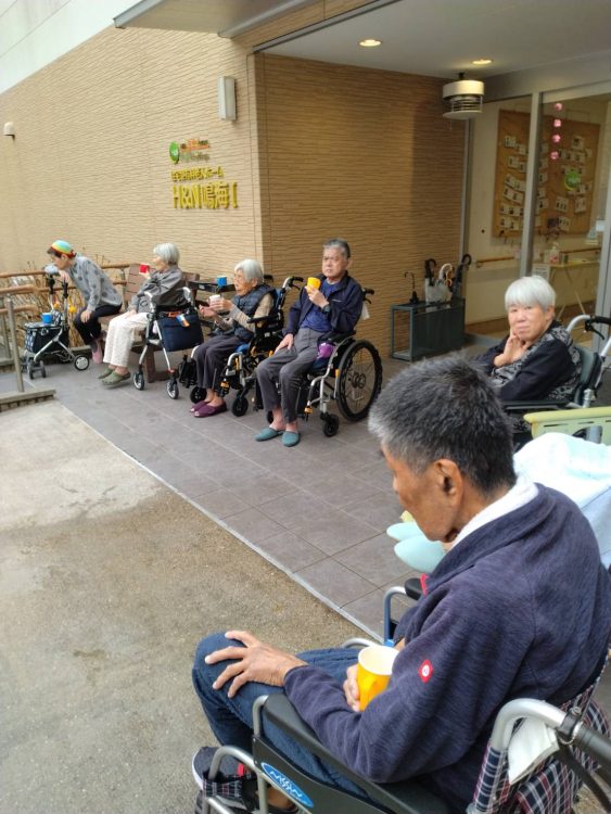 Ⅰ号棟の皆さんは外でお茶会中!