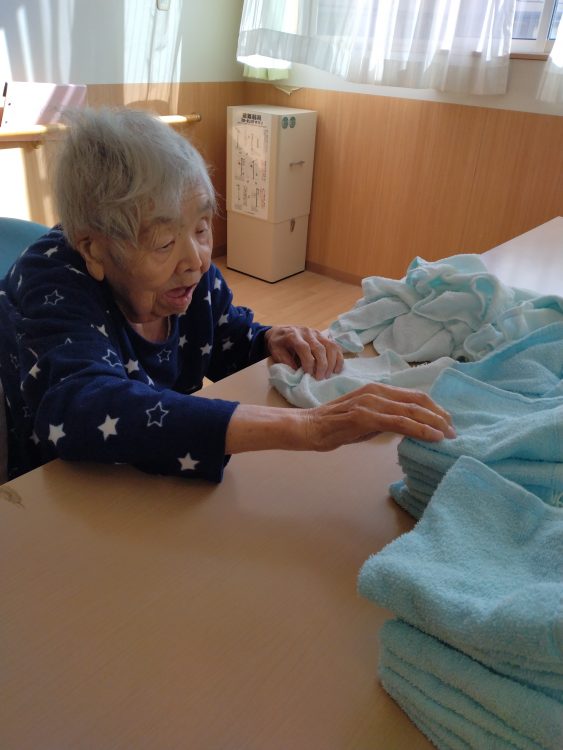 座られ、タオル畳み〜