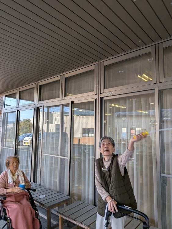 それーそれー大小様々、K様の見事なシャボン玉をN様が食い入るように見ておられました👀