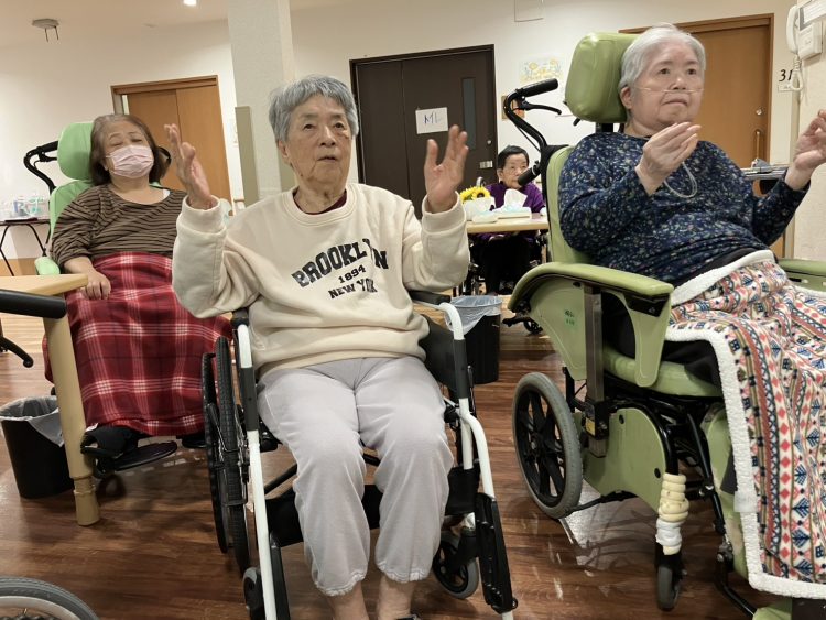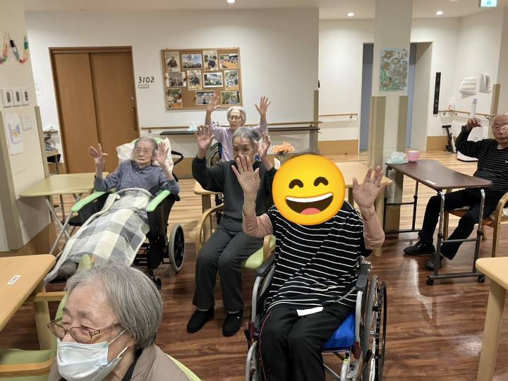 体操の時間です!皆さん手、足を伸ばして無理なくストレッチ!