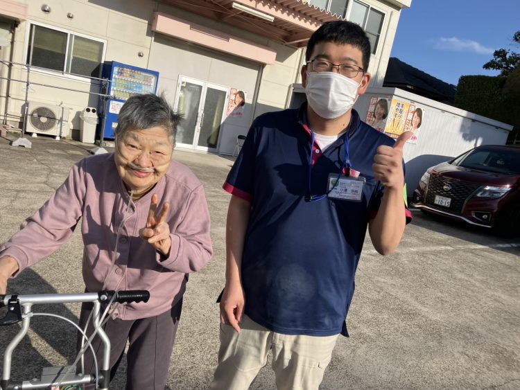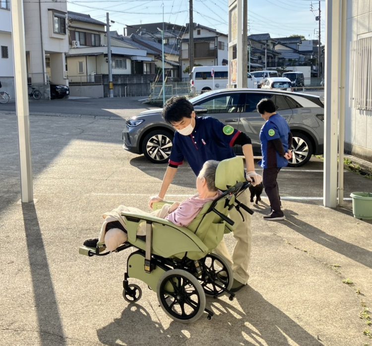 利用者様も外へお散歩に。